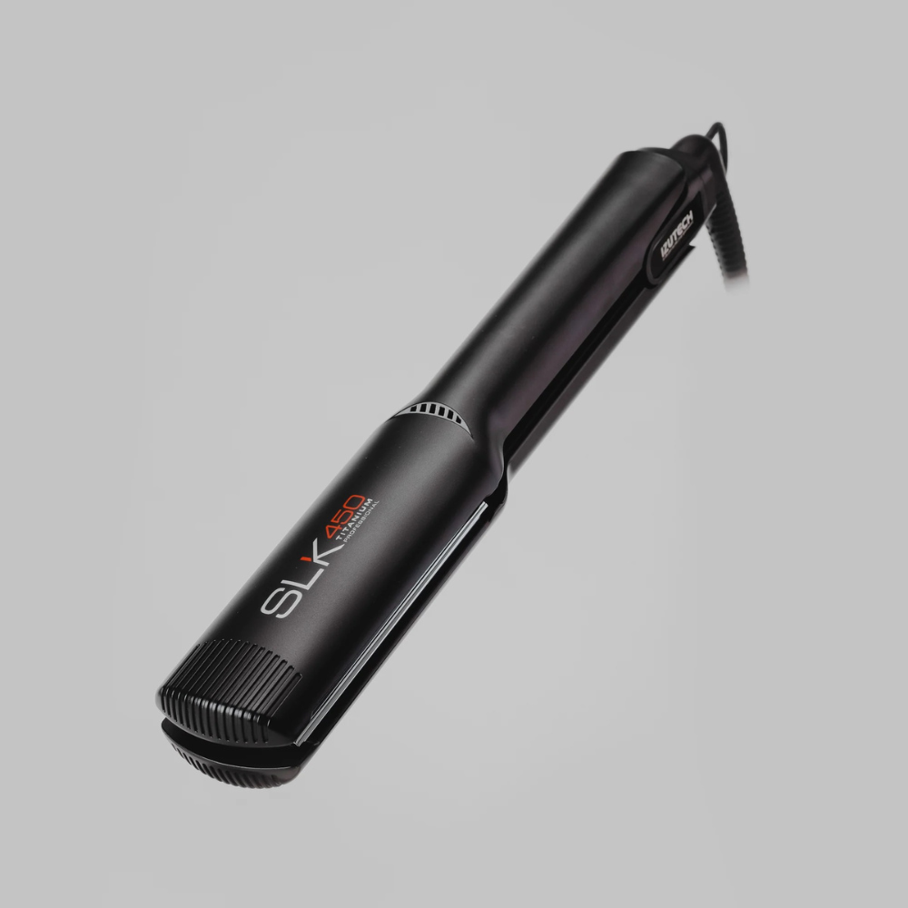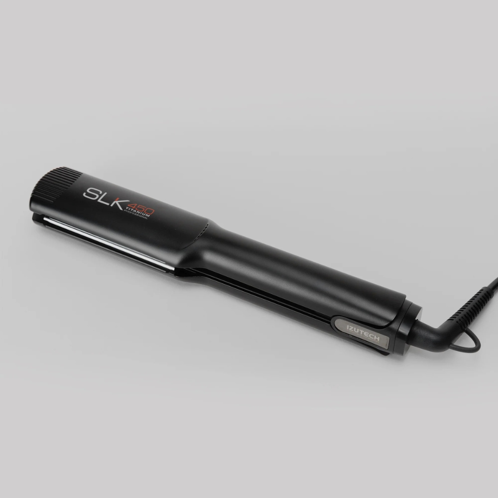 La Izutech SLK 450 Titanium Digital Flat Iron es una plancha profesional diseñada para ofrecer alisados perfectos, rápidos y duraderos. Sus placas de titanio de 1.5 pulgadas garantizan una distribución uniforme del calor, permitiendo un deslizamiento suave que reduce el frizz y aporta brillo al cabello.